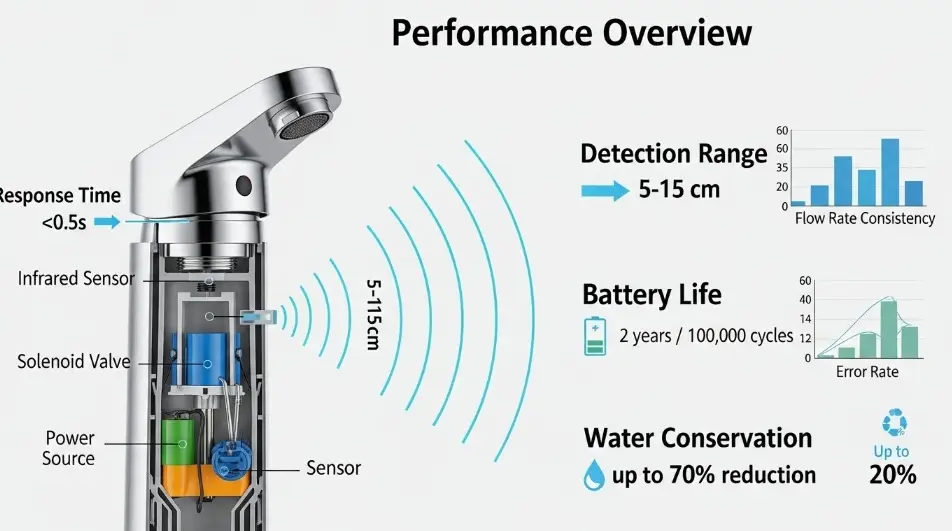 Touchless faucets look straightforward to end users, but the performance they feel is the result of sensing physics, signal processing, valve mechanics, and sink-area geometry. This guide explains measurable definitions and field-ready mitigation steps for commercial restrooms.